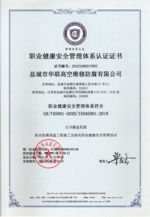 鹽城市華聯高空維修防腐有限公司始建于上世紀八十年代,系專業從事風力發電機塔筒防腐,塔筒維護,塔筒補漆,塔筒噴字等工程。不停產,不搭手架,高空懸吊施工的一級高空安全資質、一級高空防腐施工資質、二級建筑施工資質的高空建修、防腐工程、公司。現已發展集科研、設計、施工為一體的的江蘇省較大的高空建修,高空防腐施工企業;公司注冊資金3008萬元,流動資金8000多萬元;擁有高修技術科研高修工程設計、高修工程施工三大技術與施工組織體系;公司擁有一流的技術施工隊伍,其中有高級職稱36 名,中級職稱126人。具備一級防腐資質、一級安全資質及二級建筑資質,公司下轄五個分公司和十八個辦事處,為全國數百家企業解決了若干“高、大、難”的特殊工程項目,填補了我國建筑史上的空白。